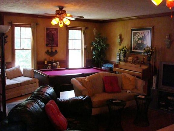 This is a house you'll love coming home to! The yard is manicured with easy maintenance plantings, the paved drive leads to a rear entry two car garage. There's a ton of additional outdoor storage by the basketball court. The best outdoor features are the back yard privacy fence, the in-ground pool (with new liner), deck, and screened porch with ceiling fan and five person hot tub. Enter the front door to a foyer with hardwood floors. The great room has hardwood floors, crown moulding, two ceiling fans, and a wood burning brick fireplace. The formal dining room has wood floors, chair rail and crown moulding. The kitchen is spacious with ceramic tile floors, bay window breakfast area, built-in shelving and plenty of storage cabinets. The peninsula is great for entertaining or a quick snack or breakfast. The rear staircase leads to a large master with huge walk-in closet, ceiling fan, and full bath with double vanity and shower. Another bedroom has a walk-in closet with access to the walk-up attic. All bedrooms are large; the one over the garage has dormers and built-in storage. With the washer and dryer on the second floor there is no need to carry the laundry up and down the stairs.