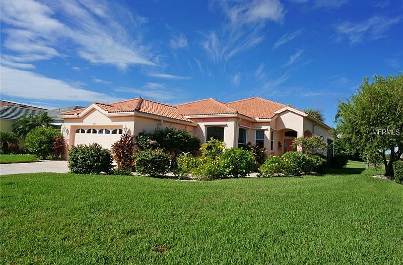 3 Bedroom, 2 Bath, 2 car garage home in the gated community of SEMINOLE LAKES. This home offers AWESOME VIEWS of the 17th Fairway and a partial lake view. This spacious, light and bright home features a Great Room, separate Dining Room area and large Kitchen with dining area, solid surface countertops, breakfast bar and closet pantry. The master bedroom suite has dual sinks, soaking tub, separate shower, huge closet and sliding doors to the screened lanai. The 20 x 13 lanai offers spectacular views and is a wonderful retreat. The flooring is neutral tile and carpet. Design features include front entry with transom window and hall closet, plant shelves, pocket sliders, tub/shower combo in guest bath, open and split bedroom floor plan. Hurricane shutters. The gated community of Seminole Lakes features a guard at the entrance, 18 hole par 62 golf course, clay and hard tennis courts, fitness room, community pool. Fees apply for some of the amenities. Located minutes from shopping and dining in historic downtown Punta Gorda, medical care, art galleries, waterfront parks, Fisherman's Village and more! This is what the Florida lifestyle is all about!