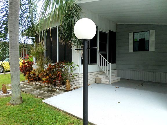 ***This home is on leased land - contact listing agent directly*** IMMACULATE, UPDATED TURN KEY CUTIE WITH ***LARGE GARAGE*** IN AFFORDABLE, QUAINT & WELL MAINTAINED COMMUNITY. Plantation Grove is a gated, 55+, pet friendly neighborhood located just minutes to shopping, restaurants, hospital, Sarasota Airport and the beautiful Gulf of Mexico! Amenities include a heated pool, whirlpool, clubhouse, fitness center, shuffleboard courts, storage area and endless activities for its residents. This great home boasts an extra-long garage in excellent condition with electric opener and additional side French doors for a golf cart so that your car does not have to be moved in and out each time you head for the pool. The large utility shed is accessed through the garage and houses washer & new dryer, workbench, Stanley tool chest, happy hour mini fridge and numerous lawn and beach supplies. Additional cabinet storage and shelving will remain with the home. Renovations in this home include drywall, plywood subflooring and quality laminate throughout with baseboard molding. A cathedral ceiling lends to the spaciousness of this lovely home. The updated open kitchen has refinished cabinets with added drawer storage, pantry, granite look countertops, double offset deep granite sink with disposal and single handle faucet, and quality laminate flooring that runs throughout the entire home. Kitchen is equipped with all dish and cookware needs, utensils and small appliances plus a single serve Keurig coffee maker and under-counter radio! Dining room includes additional storage cabinet, corner curio and glass top table with 4 chairs. Sunny living room is furnished as pictured plus flat screen TV. An enclosed porch is accessed through sliding doors and overlooks the lake. This porch has easy slide vertical windows, vinyl tile-look flooring and offers a super relaxing space with scenic views and calming sounds from the lake's fountain! Both bedrooms are furnished as pictured minus TV's. Enter the master via French doors! There is a large walk-in closet and half bath with sink and commode. Guest room has wall closet and the main bath just around the corner with spacious walk-in shower. This home's exterior is immaculate with carefree landscape. A cute backyard space includes cement patio in great condition! New HVAC 2016. Turn key and move-in ready. Literally bring your suitcase and start living your dream!
