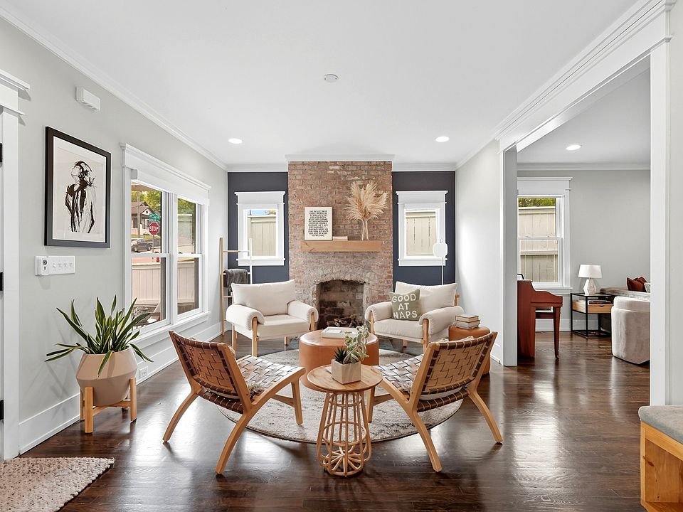 Large rec roomDetached two-car garageExposed brick fireplaceCozy eat-in nookMain-floor laundry room