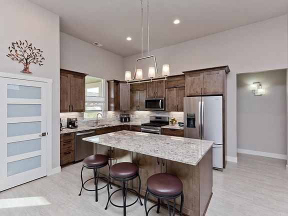 Fabulous home with very nice Monument views. This 3 Bedroom, plus an office/Den, 3 Bath, and 3 Car garage home looks and feels like "Brand New." Oversized 3 car garage (Single side has an extra long bay at 31 feet). Home is an open concept with soaring 12 Ft ceilings! The kitchen boasts a large center island for entertaining, Stainless Steel Appliances including a gas range oven, and gorgeous granite counters. The large living room has a beautiful floor to ceiling tiled gas fireplace. This home has a split bedroom design. The Primary Suite boasts a tray ceiling, a door to the back patio, a huge walk-in closet, free standing tub, a gorgeous tiled shower & split vanities. There are two additional spacious bedrooms with a Jack & Jill Bath, and linen closet. Out back is a large covered patio with beautiful landscaping and great views! Irrigation water provided through the HOA. **RV Parking**