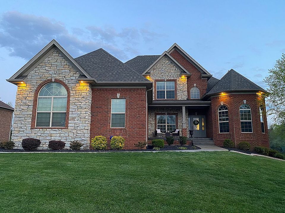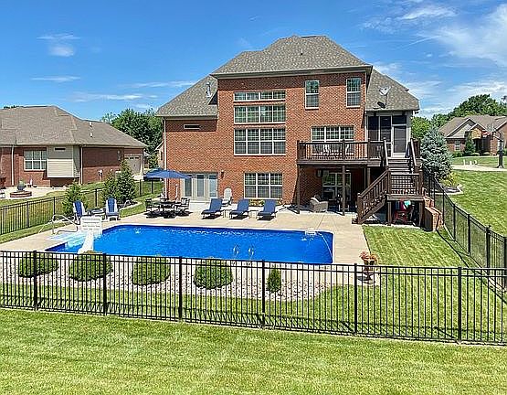 Contact Bill, owner @ 812-704-8040 for questions and to set up an appointment for a showing. GORGEOUS CUSTOM-BUILT ASB home in desired Caiman Court neighborhood. Backyard oasis features a large, heated in-ground, saltwater POOL. This 5 bedroom, 3 1/2 bath house features many custom upgrades with an open floor plan. First-floor master has tray ceiling, whirlpool tub, dual sinks, large tile shower, and a walk-in closet. Kitchen has custom-designed cabinetry, granite countertops, double oven, walk-in pantry. The living room has hardwood flooring, gas fireplace, beautiful built-ins and a 20-foot wall of windows, upstairs bedroom has a balcony that overlooks this room! The finished walk-out basement has a large family room, wet bar, full bath, 5th bedroom, and storage space. The second floor has a HUGE bonus room that could be used as a playroom, bedroom, office, etc as well as two other bedrooms, all of which have walk-in closets. Extensive crown molding throughout the house. THREE car garage with a bonus garage in the basement.