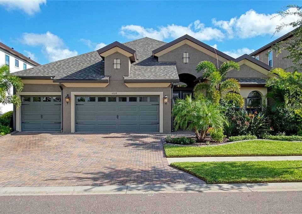 4-bedroom, 3 baths, plus den/study and 3 car garage Homes by Westbay Capri model (Artisan series) with many after closing upgrades. This single story 2600+ sqft beauty is move-in ready and available for quick close. The home features 12' ceilings in the extended entry and great room, 10' ceilings in the rest of the house. The open concept living, and dining provide a spectacular view of the lush landscaped backyard and easy access to bring the outdoors in through the upgraded 16x8 slider patio door. Some of the builder installed upgrades are gourmet kitchen with stainless steel natural gas 36" (5 burner) cooktop and built-in microwave and oven, installed inside custom maple cabinets. The kitchen features a huge quartz island with single basin sink and spacious counters with undercabinet lighting and pendant lights. The master bathroom includes a garden tub and separate walk-in shower. The master bedroom is spacious with view of the backyard and two walk-in closets. The bonus room is intended as flex space and is currently used as an entertainment room/office. The home has 2" blinds throughout, levered door handles, tile in all common areas, laundry and bathrooms, full yard sprinkler system, granite counters in all bathrooms. Homeowner added upgrades include custom cabinets in the laundry room with granite countertops and apron stainless steel, full gutters, 6' privacy vinyl fence, water softener, upgraded light fixtures, 8 ceiling fans, paved front lead way, lanai concrete extension with pavers and enclosure, extended open paved patio, front landscape curbing, wired for generator on separate switch.