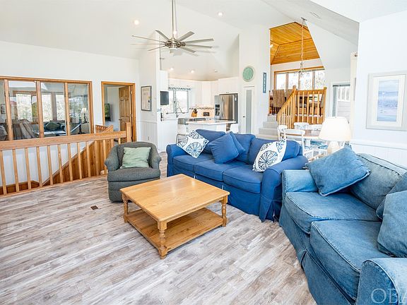 Purchased several years ago, this home has seen a huge transformation!! Leaving basically only one bathroom to redo and possibly update some furniture to make it yours, everything else has been meticulously handled from the new LVT flooring in the main living room and the kitchen, to the new kitchen with stainless steel farmhouse sink and silestone countertops to the stainless appliances, to the new fortified roof and new pool. It has several cozy nooks to hide out in and read, watch tv or enjoy the serenity a vacation offers. The top level offers one of the ensuite bedrooms with a large sun deck off the front of the home tucked in behind the white tiled wood burning fireplace. The ensuite bath has a new vanity, new flooring, a custom tiled shower stall and new commode. Outside this bedroom is the half bath that is shared for the open spaces on this level. A huge 16' x 12' bonus tv room sits off the kitchen and would be a great spot for family game night. The Kitchen is completely remodeled and ready for any chef to enjoy. Another breakfast / dining nook is up a small flight of stairs for more formal holiday meals. Mid level boasts the other 3 bedrooms, where a queen bedroom is attached to a shared hall bath (the only one needing refresh) and offers covered deck access on the front of the home, next to that is a huge double bunk room for the kids, also offering deck access, and then a large king ensuite bedroom with a huge walk in closet and deck access. The ensuite bathroom has a new vanity and new commode, as well as new floors - the shower stall is original. Head down one flight and get to the laundry room with the bathroom and then to the outside areas. DO NOT MISS the outdoor shower on the back of the home - it's something you would want in your own home!!! Directly on the Barracuda Beach Access walkway you are 915' from the oceanfront. Decent rental as well but has many blocked weeks for current owners to complete all the work they've done to date. Open up that calendar and reap the full benefits or an updated home in Whalehead!