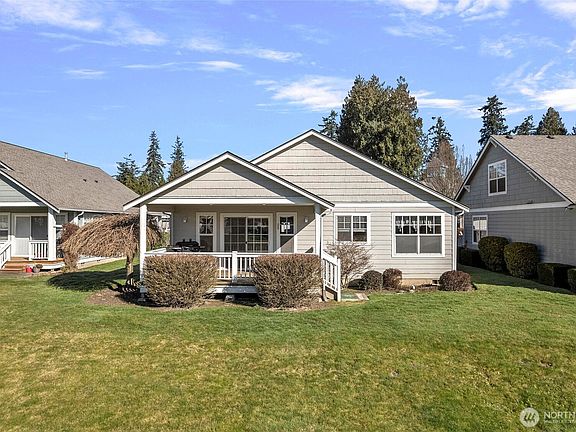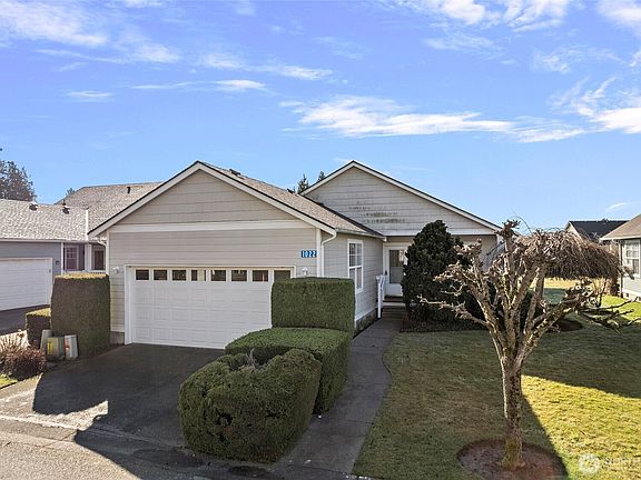 Spacious stand-alone condominium in "The Cedars" adult community. Special location across from the clubhouse/post office. Wonderful sunny southern views from the rear covered deck. Primary suite includes walk in closets and full bath. 2nd bedroom with easy access to common bathroom. Flex space for office, hobby etc.. Open floor plan with gas fireplace and a mini split air conditioner. Beautiful oak kitchen with eating bar and abundant storage. Separate laundry and 2 car attached garage. Wired for generator. Centrally located in the heart of Burlington close to medical and shopping. Great place to get outdoors, complex is adjacent to walk paths and Skagit river sports park.