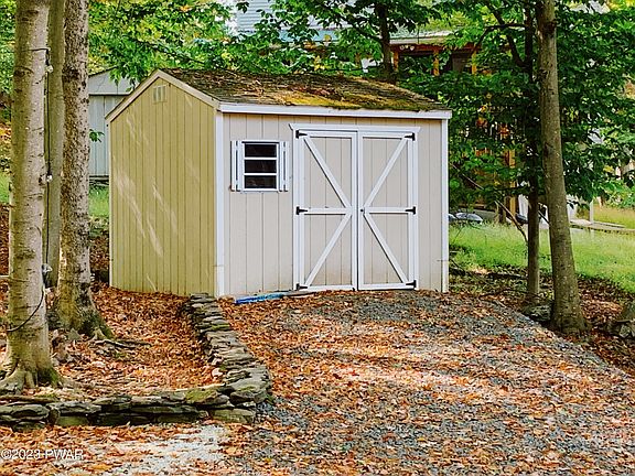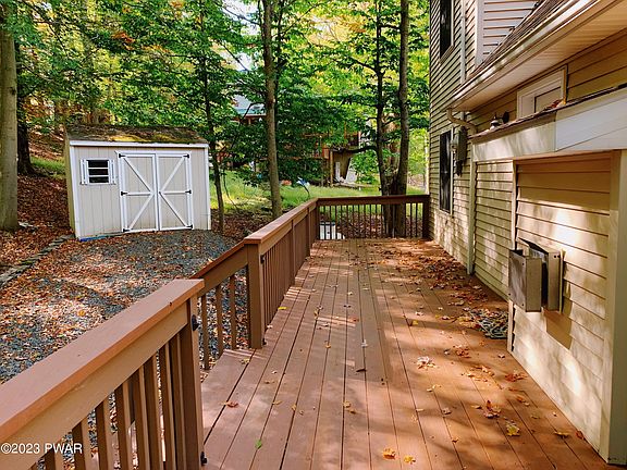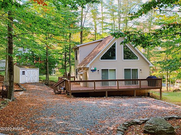 Move in Ready... Wallenpaupack Lake Estates Chalet features 3 bedrooms plus loft area, 2 full baths, Open concept living area with gas fireplace and wrap around decking for outdoor entertainment! Located on a quite cul de sac this property is a short walk to a playground, Rockledge Pool, Adult Lounge, Deer Lake Beach area, Teen Center and so much more! Access to Lake Wallenpaupack is available at the W.L.E. Marina and separate picnic/ swim area, all on the big lake! Additional Amenities include central sewer & water, security, road maintenance, 3 pools including an indoor pool, 2 sandy beaches and so much more!! This golf cart community has so much to offer! A must-see property that has been lovingly cared for and move in ready with all hard furnishings included., Beds Description: 2+BED 2nd, Beds Description: 1Bed1st, Baths: 1 Bath Level 1, Baths: 1 Bath Level 2, Eating Area: Modern KT, Sewer: WS Comm Central
