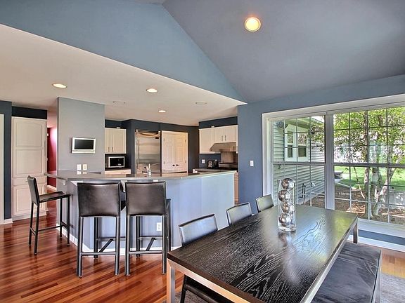 Highly appointed, pristine 3 bedroom home. Chef's kitchen with Brazilian cherry floors, high end appliances, island, breakfast bar, pantry & large dinette. Four season room off kitchen & great room with fireplace, dining or first floor office, whole house audio/video system, custom finishes through out. Professional landscaped yard with private back, brick patio & deck. Heated garage with tons of built-ins. Lower has daylight windows & plumbed for full bath.