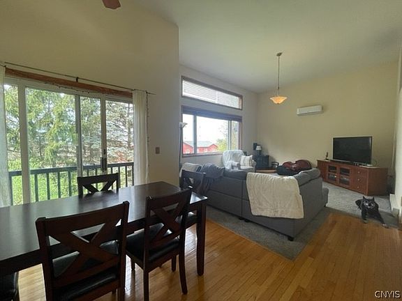 3 bedroom, 1.5 bath end-unit Cayuga Vista townhouse located in South Hill! The main level is spacious and bright with an open floorplan and gorgeous views. The lower level has 2 spacious bedrooms and a full bath with laundry. A third bedroom, or office, is located on the upper level. Very low exterior maintenance and many updates inside, including new refrigerator & dishwasher, new flooring, newer mini-splits installed for heat and air conditioning, and newer hot water heater. Enjoy taking in the sunset from the deck or sit on the patio with a good book. Close to Cornell, Ithaca College, and Downtown Ithaca.