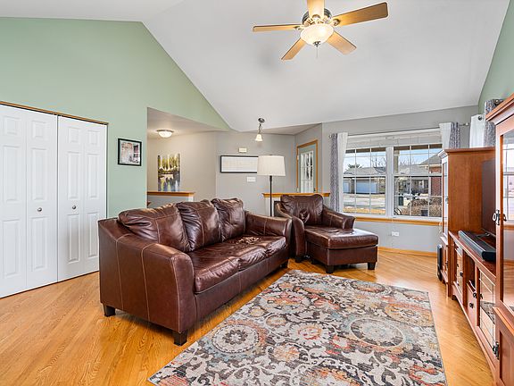 Seller is requesting highest & best by 7pm on Sunday, February 16. Welcome to this stunning ranch-style duplex nestled in a picturesque gated community, overlooking a serene pond. This beautifully designed home offers a perfect blend of comfort, style, and functionality. Step into the vaulted, sun-filled living room with gleaming hardwood floors and expansive windows that bathe the space in natural light. A formal dining room is perfect for entertaining, while the updated vaulted kitchen is a chef's dream. The kitchen boasts two skylights, a large island, subway tile backsplash, oak cabinets with crown molding, stainless steel appliances, a pantry, and access to the concrete patio with tranquil pond views. The main level features a desirable laundry room equipped with a sink and cabinetry, along with a hall bathroom adorned with chair rail and wainscoting. The expansive master suite includes a walk-in closet and a private bathroom with an oversized shower and seating. The finished basement is a versatile haven, offering a cozy family room with built-in bookshelves, a game closet, a second refrigerator, a half bathroom, exercise area, and a home office or potential third bedroom. An impressive storage room includes a workbench and ample cabinetry. Additional highlights include a sump pump with battery backup, new air conditioner (2020), furnace (2023), roof (2017), kitchen appliances (2020), dryer (2021), and washer (2023). This home combines modern updates with timeless charm and is ideal for those seeking a peaceful, low-maintenance lifestyle in a beautiful community. Don't miss this exceptional property!