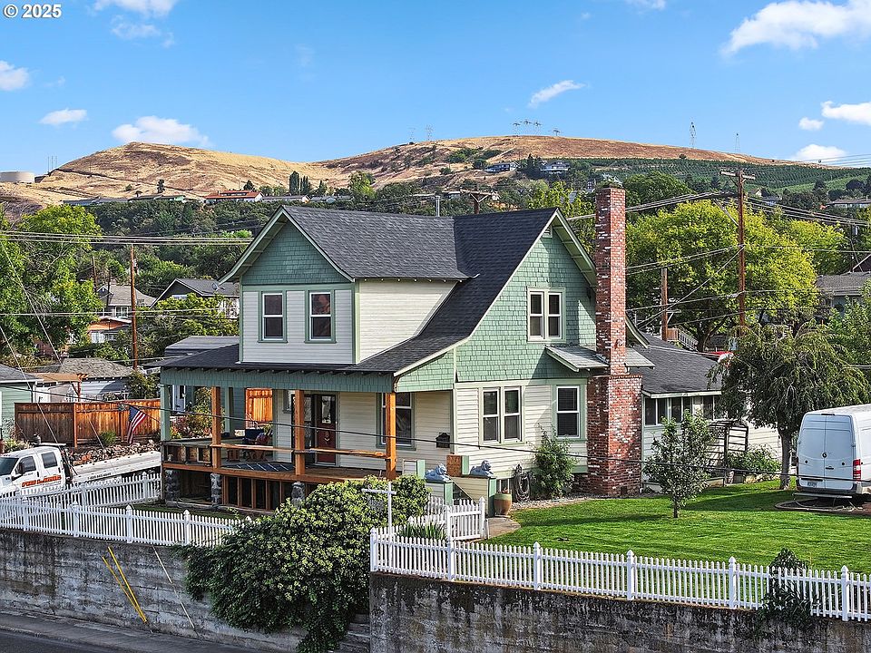 Discover this charming craftsman home, a truly timeless masterpiece situated on a spacious lot with a stunning wrap-around porch. Perfect for relaxing and entertaining, this residence offers ample extra storage and a convenient pull-through driveway. The basement includes a bonus kitchenette. Elegant dark trim accents the interior, complemented by 2½ bathrooms and abundant natural light throughout. The deck is currently being remodeled and will be finished before the new owner moves in. Recent roof replacement adds peace of mind. This timeless home combines classic craftsmanship with modern updates—an opportunity not to be missed!