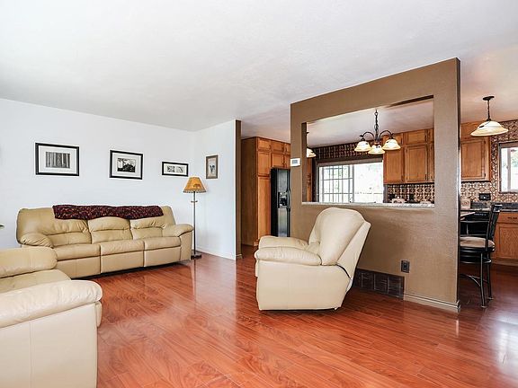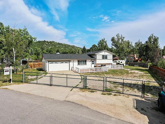Enjoy your 1481 square foot bi-level home with one bedroom, bonus room (add a closet for 4th bedroom) and full bathroom in lower level and two bedrooms and full bathroom in upper level. Main floor offers living room with generous kitchen and island. Five year old laminate flooring throughout home. Kitchen 75% remodeled with granite counters, updated splash backs and cabinets. Electric stove and two refrigerators (in kitchen and garage) included as well as washing machine and dryer. Convenient pocket doors separate the lower level and upper level for privacy. You will appreciate the sliding wooden door with storage space for the upstairs bathroom that was custom made. Bathrooms recently remodeled. Newer stone patios in the back and front for those wonderful outdoor times. 50 Amp power hookup with pad for an RV on the generous .43 acre, as well as 2-car attached garage with storage. Easy access to I25 and Castle Rock. No HOA. Fencing .
