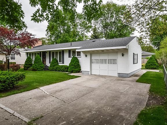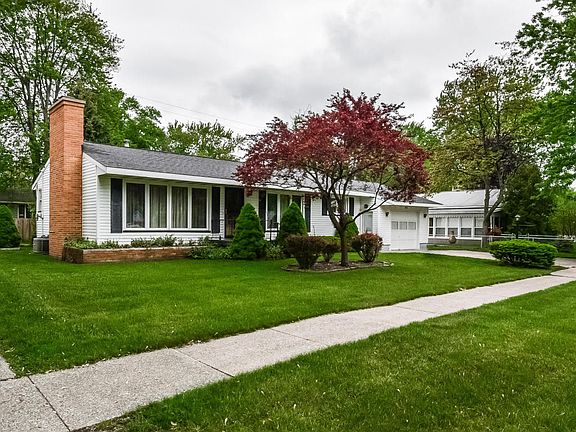 Will maintained Roosevelt Park rancher with oodles of originality inside. Open Living/ Formal Dining room has a sandstone fireplace trey ceilings & built in china cabinet. Eat in kitchen has original cabinets. Interior doors, trim, and hardwood floors are all in excellent condition. Full basement offers rec room w/ brick fireplace, knotty pine, & groovy shuffle board tile floor. Quaint neighborhood ambiance with sidewalks, mature trees, and short distance to ball fields, tennis courts, park, school, church, and restaurants.