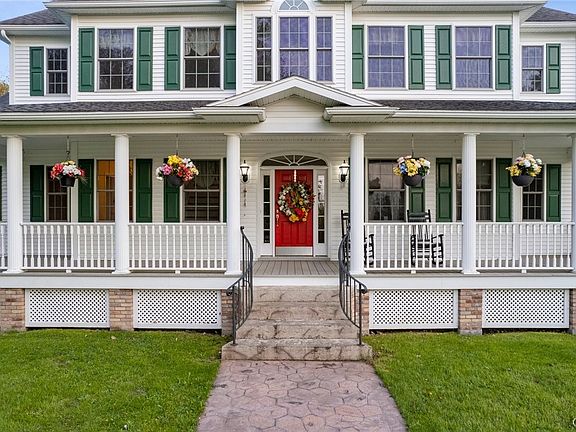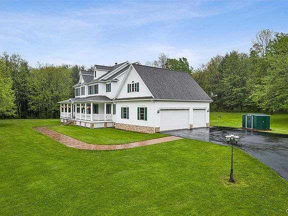 Beautifully built home consists of 4 bedrooms and 3.5 bathrooms with large 663 +/- SF second floor bonus room which is in addition to the 3400 +/- SF. Situated on 60 +/- acres with 2-stall heated garage and an additional oversized detached heated garage. Gorgeous backyard with covered deck overlooking a heated in ground pool with an outdoor stone fireplace. Hardwood flooring and custom tile with radiant heat throughout the first floor. First floor master suite with an additional second master suite on the second floor, both with walk-in California closets. Chefs’ kitchen with granite countertops and large center island with stainless appliances and walk-in pantry. Large open living room with cathedral ceilings and 2-story stone fireplace. Separate dining room with stunning tray ceiling for your gatherings!