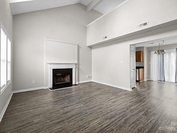 Warmly entertaing open floorplan on a quiet cul-de-sac. Open 2 story family room with wood burning fireplace and vinyl plank floors. Kitchen boast stainless appliances granite countertops lots of cabinets and vinyl plank floors. Sliding Door off of the breakfast area opens to nice size deck and paver patio overlooking flat back yard. Large Primary Bedroom on the main level with his/her closets. 2 roomy bedrooms upstairs plus a large open loft. Upstairs has an updated bathroom with glass door slider to a walkin shower. Nice size 2 Car Garage. Fresh Paint and move-in-ready. The neighborhood is in a great location with easy access to 485 and Hwy 16.