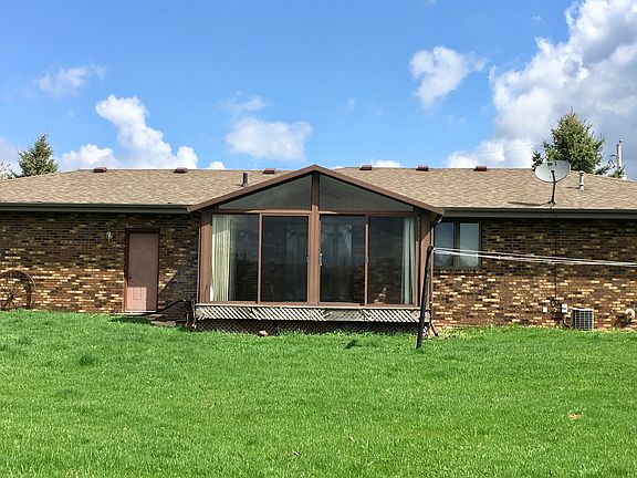 Country brick home built in 1994, updated floor coverings, open kitchen area. Central vacuum. Three season room, measures 11x16. Also 24x48 shed.