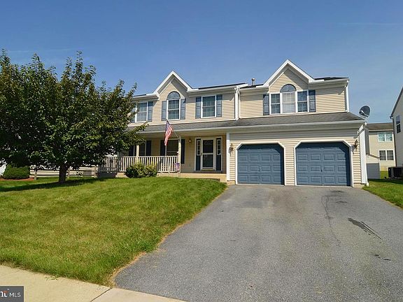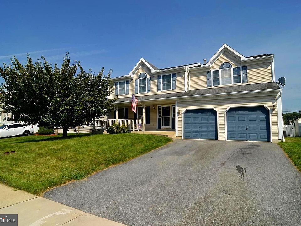 Welcome to this spacious two story in popular Saylor Farm Estates. Upon arriving at the home you 'll find a covered front porch, a great place to sip a cold drink on a hot day. The entry has engineered wood floors and a convenient powder room. The formal living room is open to the dining room. Invite everyone over for a holiday dinner, your dining room is just the right size. Cooking is a breeze in this well appointed eat in kitchen featuring a work island, plenty of Corian countertops, and lots of cabinets. There is also a breakfast area by the sliding doors that leads to the rear deck. Your family room is spacious making it easy for furniture placement. There is fresh paint and new flooring throughout the home! Upstairs the master bedroom is huge with a large walk in closet, comfortable sitting area or office and a deluxe master bath with double sinks, jetted tub and shower stall. Three other bedrooms and a hall bath finish the upstairs. Other features include an easy to finish basement with a Bilco door, two car garage, fenced yard and shed. Welcome Home!