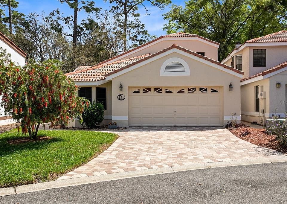 Greenbriar of Tuscawilla. Enjoy the elegance and privacy this home offers. Light & Bright with vertical space that adds to the sq footage. Newly pavered driveway, walkway to front door and backyard patio. Plantation shutters add to the beauty of the front rooms. This sparkling clean two-story home is in the highly sought-after Tuscawilla golf community. The home is on a cul-de-sac with guest parking and no rear neighbors. Relax and enjoy the mature trees and landscaping in the peaceful fenced and walled yard. Admire the sunny open plan living room and dining room with its soaring high vaulted ceiling with French doors opening onto the patio area. The Master bedroom on the first floor also has French doors along with a large master bathroom, walk-in closet, and a separate California closet. New carpeting on the stairs and upstairs bedrooms. The pretty cheery kitchen features a delightful informal dining area with a large bay window overlooking the front of the home. It has newer kitchen appliances and cabinetry. Upstairs there are 2 large bedrooms with a full bathroom. The home benefits from an attractive Tile roof and two-car attached garage. The home has had many upgrades including knockdown ceilings, replacement double pane windows, fully re-piped, & water treatment system in garage. HOA fees include lawn maintenance affording you more time to be on the fairway, use the community pool, enjoy the cycling/walking trails, or visit the picturesque neighborhood pond. The Home has had a four-point inspection on 8/2022 (attached for Realtor), and termite inspection in 2018. Fabulous location offering Tuskawilla Country Club lifestyle, great schools, shopping, restaurants, and major highways. Don’t miss this opportunity to make this your new home.