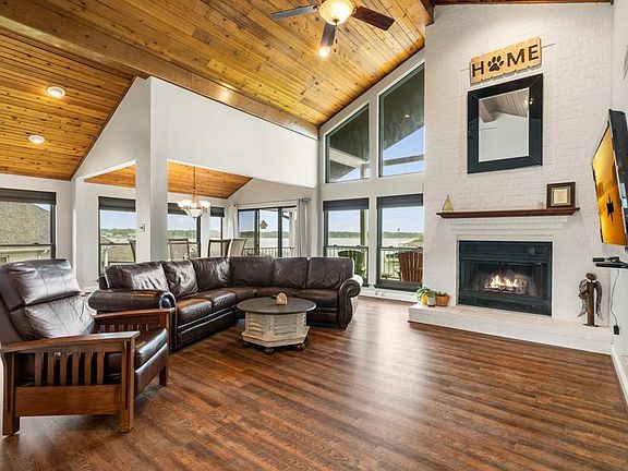 Welcome to this Waterfront Stunner! 3-bed, 2.5-bath home located on Lake Conroe. This property offers breathtaking views of the lake & Margaritaville. The home features a private in-ground POOL and two expansive patios, perfect for entertaining or relaxing while taking in the lake air. The enclosed porch adds additional outdoor living space, BOAT SLIP ensures easy access for boating or water activities. The downstairs level includes a cozy sitting area/GAME ROOM w/ a second fireplace, providing an ideal space for family gatherings. Upstairs, a BUNK ROOM over the garage offers extra sleeping space for guests or an ideal hideaway for kids. Recent updates include NEW ROOF, FENCE, vinyl plank WOOD FLOORING, FRESH PAINT inside & out. The primary bath has been beautifully remodeled, & the pool pump was recently replaced. Situated on a LARGE LOT, provides ample space both inside & out, making it a perfect lakefront retreat for entertaining, relaxing, or enjoying the beauty of Lake Conroe.