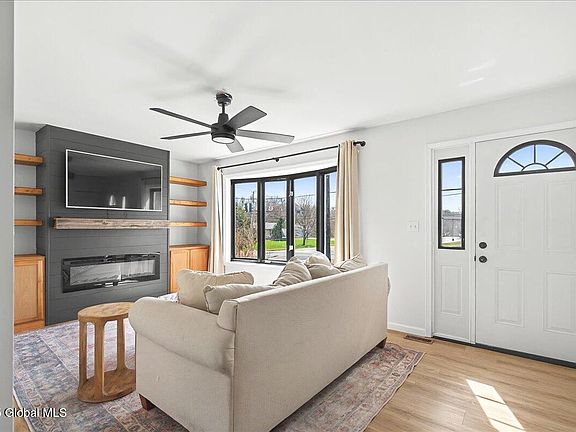 Looking for an affordable home in the East Greenbush school district? This is your chance! This solid ranch is nestled on almost a half acre with a pool and fenced yard. It has a newer roof, windows, stainless steel appliances, and mechanicals, plus a fabulous living room statement wall with electric fireplace and shelving. The primary bedroom is vast and includes a full ensuite bathroom and the other two bedrooms are equally spacious. There is bonus finished space downstairs for a family room, office, or playroom. Outside is a generous deck and pool for relaxing or entertaining. The pool is in good working order and will be professionally opened prior to closing. Close to the YMCA, library, and high school. 9 mins to Albany. Schedule your private showing today!