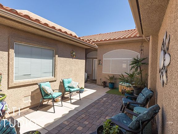 Located in gated golf community, don't miss out on beautiful 1450 sq ft town home with 2 Bedrooms, 2 Bathrooms and a 2 Car Garage. Plenty of open space with the Arizona strip as your backyard and the beautiful Virgin Mountains view! Front courtyard invites your entry into this open floor plan. This home features a large dining, kitchen and living room with plenty of natural light. The kitchen has oak raised panel cabinets, tile counters and bar, with all appliances included. Guest bedroom with adjacent full bathroom makes a private retreat for your guests. Large master ensuite with double sink vanity, shower and large walk-in closet. The Washer and dryer are also included. Summerhills subdivision gives you access to the Mesquite Vistas recreational facility with a large outdoor pool, tennis courts and a work-out facility. This property is a must see! Mesquite is a premier location to soak up the sun with numerous activities such as our local recreation center, community events, world class golf, and much more!