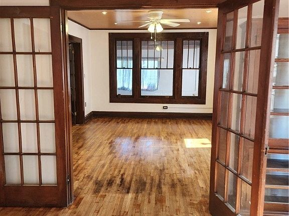 Renovated 5 BR, 2 BA beautifully refinished hardwood floors, newer windows, gutters and downspouts, metal roof, HVAC on main floor. Featuring window units on 2nd/3rd levels, unfinished basement, home freshly painted, detached garage, above ground pool, private fenced in backyard, laundry room located on 2nd floor. Don't miss out on this home! Would be a great starter home or a great home for someone that needs extra space and rooms. 3 levels plus basement. 3rd floor has 303 sq ft. included in total square footage. 3rd floor has 2 bedrooms.