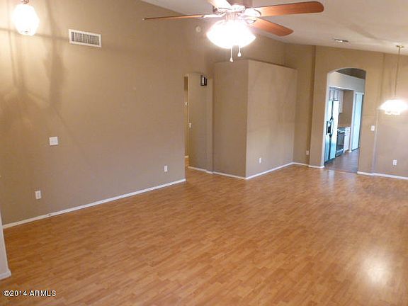 Extremely well maintained, clean home ready for a new family. This warm, inviting home painted in beige and white is complete with wood flooring in the great room, halls and 2nd bedroom. Seems more spacious then than the sq feet might indicate. Eat-in Kitchen, complete with refrigerator is open and bright and leads out to patio and charming backyard. Only a stroll away is a 23 acre park as well as schools.