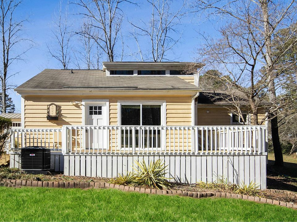 Welcome to 1022 Windrace Trail, a delightful 2-bedroom, 2-bathroom ranch that's move-in ready and packed with features designed for comfort and relaxation. Enter into the spacious living room, where the high ceiling creates a bright, open space perfect for entertaining or unwinding. Just off the living room, a large deck invites you to enjoy morning coffee, weekend BBQs, or peaceful evenings under the stars. The dining room flows seamlessly into a practical U-shaped kitchen, making mealtime a breeze. The primary bedroom is your private retreat, complete with an en suite bath and cozy porch—ideal for enjoying quiet moments. The second bedroom features sliding doors that open to the expansive deck, offering a unique indoor-outdoor vibe. Outside, the beautifully maintained perennial gardens add a splash of color and charm. But the perks don't stop there—this home is part of a community that offers amazing amenities, including a pool, a children's playground, and access to Lake Trace for boating, fishing, and more. Whether you're looking for your first home, a weekend getaway, or the perfect place to downsize, this home has it all. Schedule your tour today and experience the charm and lifestyle of 1022 Windrace Trail! Some photos may be virtually enhanced. Structural repairs completed in crawlspace, see documents. Front deck has been updated- side deck is original, back deck was installed 2022.