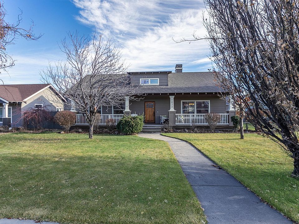 Extremely well cared for single level Craftsman style home in popular Canyon Rim Village. Welcoming front porch spans the entire front of the home. Comfortable floor plan with solid oak hardwood floors throughout, vaulted great room, spacious kitchen with slab granite counters, stainless steel appliances and dual sided fireplace. With a .19 acre lot there is plenty of outdoor living, front and back. Backyard is fully fenced and has an oversized back patio and garden beds. Rear alley access to two car attached garage. Close to the community park, the dry canyon and trails. This home is a real delight.
