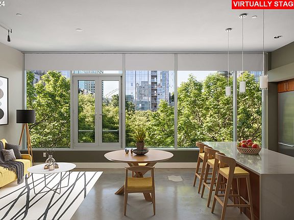 Live effortlessly in this stylish, sophisticated live/work studio. This Pearl District retreat offers the flexibility of residential or business use. It features high ceilings and a wall of windows that enjoys an ever changing outlook with each season. Bountiful trees create a beautiful backdrop in the spring and summer months, while in the fall and winter you can revel in the tranquility of Tanner Springs Park. This condo has been beautifully remodeled and enriched with incredible updates! It features polished concrete floors, thoughtfully designed custom cabinetry by CA closets which provide smart storage options, and a cool leather accent wall that doubles as art as it features all of the unique imperfections of the medium. The chef's kitchen boasts a peninsula eating island for a more informal dining option, quartz counters, stainless steel appliances, and rich wood cabinetry. A well appointed bathroom with a large walk-in shower and adjacent laundry room round out the space. Located in the Metropolitan building where amenities abound, one can enjoy the benefits of concierge services, the fitness room, conference room and library, plus two guest suites. Deeded secure parking and a storage unit are included, both conveniently located off the main garage entrance. Mere steps away from the best Pearl District restaurants, coffee, shopping and the streetcar line!