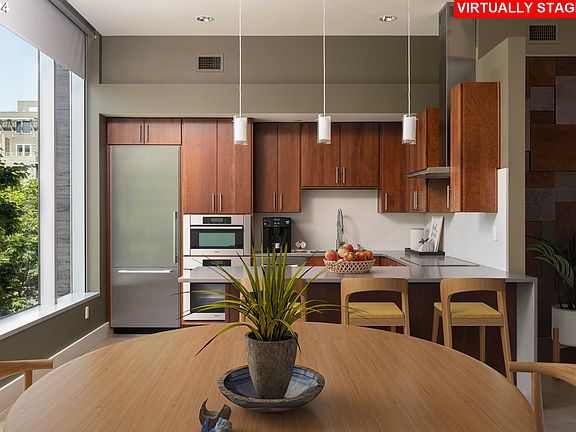 - Features: Dishwasher, Disposal, Eat Bar, Microwave, Updated Remodeled, Builtin Oven, High Ceilings, Peninsula, Quartz