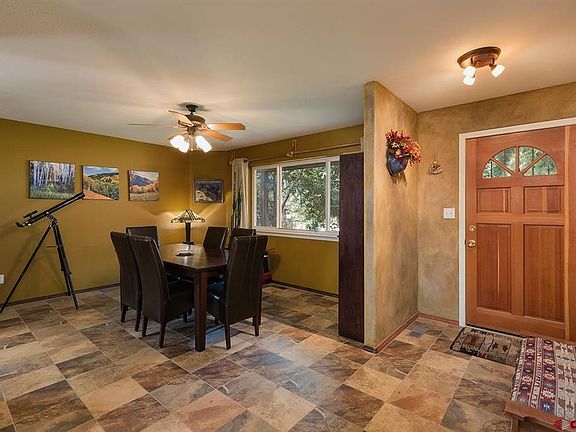 Located on a roomy lot which backs to open space, this lovely ranch style home in Durango West 2 has so much to offer. The single-level home, situated among tall blue spruce, aspen and Gamble oak trees, has a covered front porch looking across the street at open space, giving a feeling of space and privacy. The home has been carefully maintained by a long-term owner of many years. Updates include bamboo, tile, and engineered hardwood flooring, slab granite countertops, stainless-steel appliances, newer forced air furnace, and newer garage door opener, just to name a few. The stylish main bedroom and bathroom has been recently updated with new tile shower with multiple-spray and rain heads, Euro glass, granite countertop and more. Additional features include walk-in closet, ceiling fans throughout, granite countertop in laundry, and updated Andersen sliding glass door out onto the deck in the back of the home. Enjoy a soak in the hot tub, and relaxing on the deck that was rebuilt several years ago, while enjoying the quiet mountain setting. The siding of the home was stained in spring 2023 and the roof has been replaced during the seller's ownership. Conveniently located close to town, hiking and biking in the national forest, and fishing and boating at Lake Nighthorse, this location is a wonderful combination of a mountain setting with the conveniences of a neighborhood, and an established home with mature trees that has enjoyed excellent care and continued updates to the home. This home has so much offer, schedule your showing today!