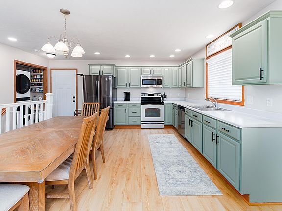 Welcome home to this stunning 2023 newly remodeled twin home and experience small town living at its finest! Step inside this charming 4bed/2bath gem and be blown away by the new flooring throughout, beautifully painted cabinets, all new light fixtures, and new paint throughout. Note the vast kitchen with stainless steel appliances, ample cabinetry, and a large dining area perfect for a table to fit all your guests! The bright and cozy living room boasts large windows letting in plenty of natural light. You will adore the primary bedroom with a new custom closet system ready to hold your wardrobe. Continue on to see a modern remodeled bathroom and the second main floor bedroom. Make your way downstairs and discover a spectacular living area and two additional bedrooms along with another updated bathroom. Don’t forget the oversized two stall garage and enjoy the giant yard and new fabulous landscaping around the exterior! Do not miss out on this rare find, schedule a showing today!