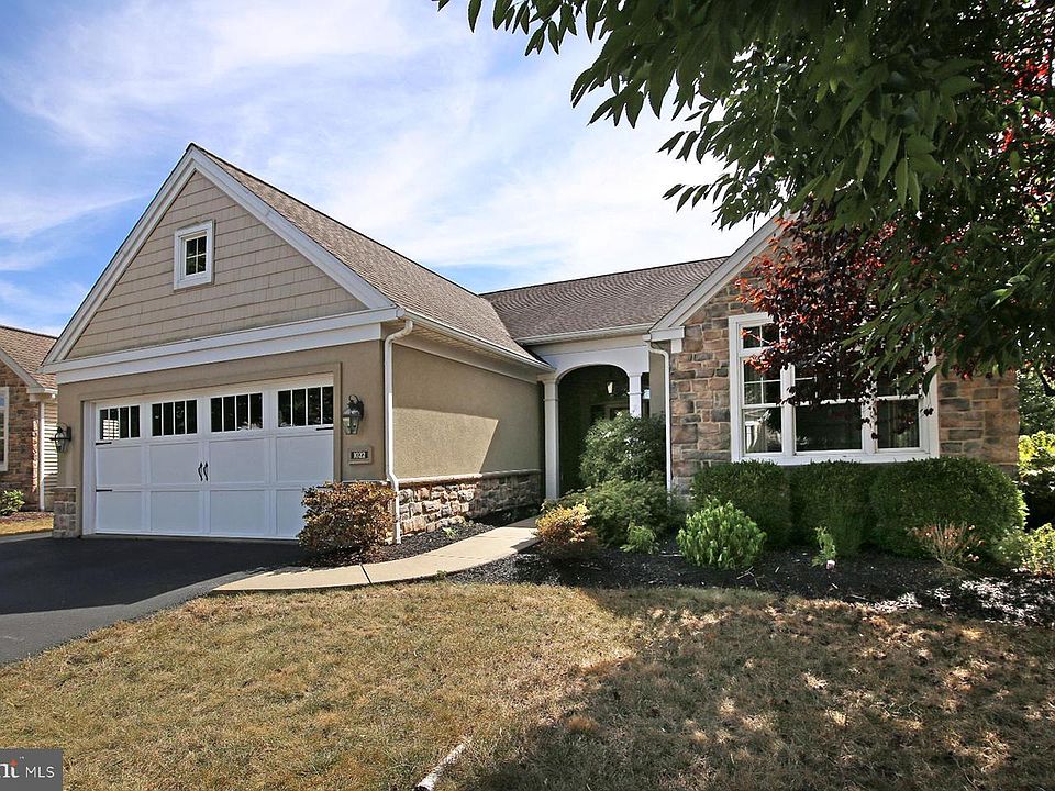 Easy one floor Living in this 55+ Community! 1840 Sq. foot ranch features beautiful front door with transom window & sidelights, gas fireplace, kitchen with custom backsplash, under counter LED lights and granite countertops. Home is bright with lots of natural light from the sunroom and solar tubes. Bring your books for the built-in custom floor to ceiling bookshelf located in the front office/bedroom. Additional features include luxury vinyl plank flooring in the primary areas of the home and carpeted bedrooms. The primary bedroom has a spacious walk-in custom closet and bath with double bowl vanity. In addition to the wonderful interior of this home your living space is also extended outdoors to a beautiful 8'x 27 stone patio w/retractable awning and built-in timer lights, Need storage? Check out the space accessed above the garage by pull down stairs to a floored storage area. This exceptional home has many wonderful features and has been aggressively priced to sell (See attached custom upgraded features list) Do not miss this one! Alden Place is a lovely 55+ Land Lease Community. Land lease inc. trash, land tax, onsite mgt.& common area maintenance. Beautiful community center on site w/indoor pool, spa, billiards, fitness room, library, fishing & more!