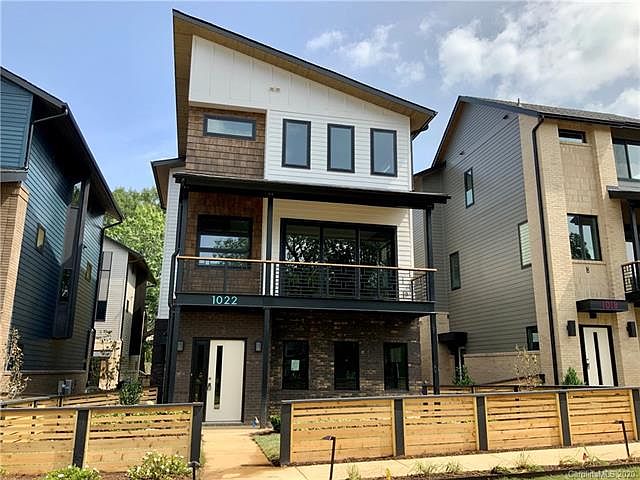 Almost complete! Last available opportunity to own on the common green at Atlas Urban Homes, an enclave of midcentury-inspired architecture set in the heart of NoDa's residential area, just a few blocks from NoDa's "Main Street" & the light rail. This home features a full-width balcony off the living area, with peaceful views of the newly completed common green, a linear community park exclusive to Atlas owners; wood-slat accent walls in the living room, main level landing & upper level hallway; a recessed master bath vanity wall with floor-to-ceiling tile accent & zero entry tile shower with frameless glass enclosure. The open plan level offers ample living area, kitchen island with seating, breakfast nook, walk-in pantry, AND the upgraded butler's pantry with beverage fridge; PLUS countertop-to-ceiling backsplash, modern solid wood cabinetry & black stainless appliances.