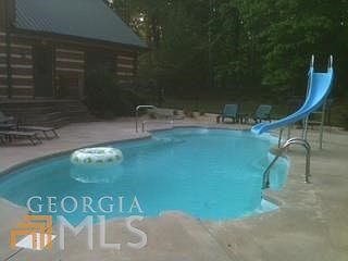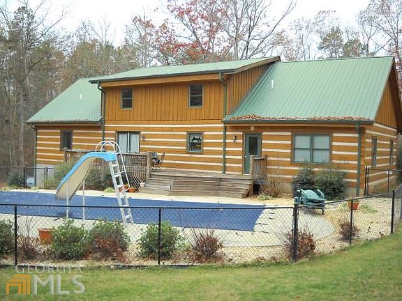 3 bedroom, 3 bath Custom log home with partially finished basement on 15.80 wooded acres and creek just minutes from town. Wide plank floors throughout, master bath offers jetted tub, double vanity and closets.Upstairs loft could be office or library overlooking the exquisite rock fireplace with gas logs. The county kitchen comes with lots of counter space, bar sitting that flows into the dining room. French doors lead to the over sized deck that surrounds the fiberglass pool and pool house. Basement boasts huge media/living room, 2 more rooms and full bath. Basement garage is located next to more storage rooms. Garden space and pole barn. Lots of inside and outside features with this one! Home and 15.58 acres can be purchased for $349,900. 03/01/14