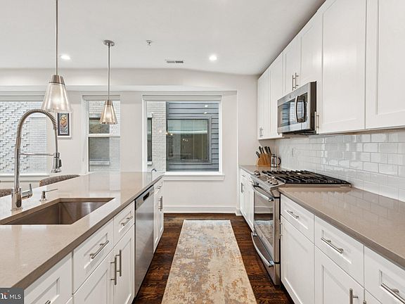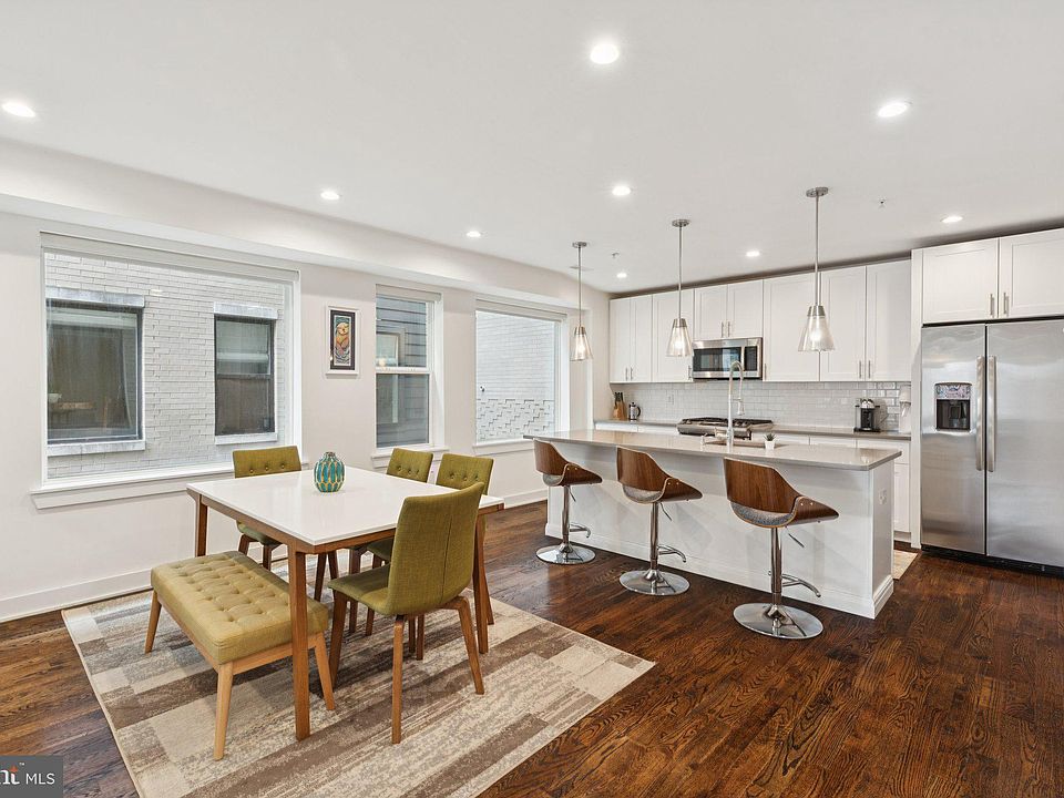 Discover refined urban living in this beautifully crafted residence in the heart of Queen Village. Built in 2018 and carefully maintained since, this three-bedroom, two-bath home combines smart design with high-end finishes and everyday comfort. The main floor offers a bright, open layout where oversized windows fill the spacious living area with natural light, highlighting the rich walnut-stained hardwood floors. The modern kitchen is both stylish and functional, featuring quartz countertops, sleek white cabinetry, and stainless steel appliances — ideal for cooking, entertaining, or casual dining. Upstairs, two generously sized bedrooms provide plenty of closet space, along with a full bathroom and a conveniently located laundry room. The primary suite serves as a serene retreat, complete with a spa-inspired en-suite bath and a walk-in closet outfitted with abundant shelving and storage solutions. The top level reveals one of the home’s most impressive features: a large rooftop deck with panoramic views of the city skyline and nearby bridges — a perfect spot for entertaining guests or enjoying quiet evenings outdoors. Additional perks include 2.5 years of remaining tax abatement, enhancing the home’s value and appeal. This property presents a rare opportunity to own a move-in-ready home that balances thoughtful design with modern luxury, all set within one of Philadelphia’s most desirable neighborhoods.