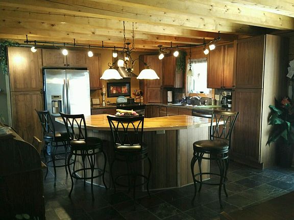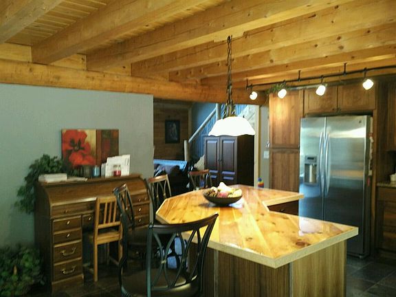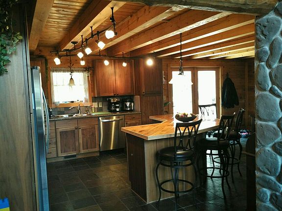A winding lane leads to the this picturesque log home with wrap around deck and 3-car tandem garage situated on 20 acres of very private and mostly wooded land-- just minutes from west side shopping! Interior features include large kitchen with walnut cabinetry, stainless steel appliances, a kitchen island bar to gather around and enjoy a meal, dining room, gorgeous living room with cathedral ceilings all of which create a great open floor plan, two fireplaces with inserts, walnut hardwood flooring, master bedroom suite on main level, laundry area with abundant storage area, 3 bedrooms, 3 1/2 bath rooms, mostly finished lower level with 2nd kitchen and additional laundry area (lower level could be 2nd living area). A game room, office, play room are possible options for some of the 13 rooms, C/A, multiple heating sources, car-sided pine walls with insulation in all walls makes this home comfy and warm in winter or pleasantly cool in summer.