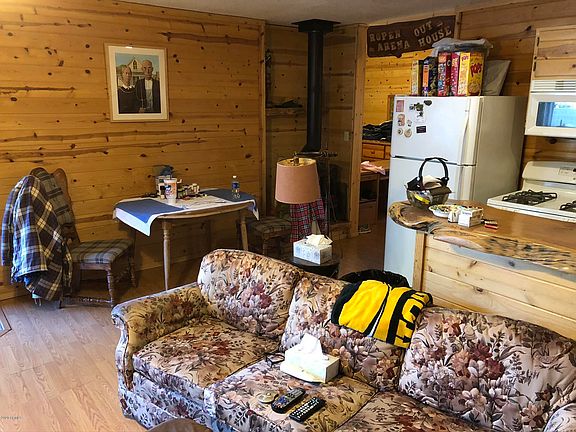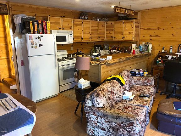Fully Furnished, 1 Bedroom, 1 Bath Rustic Cabin with ATV Garage Bordering the Tonto National Forest in Christopher Creek just below the Mogollon Rim and across from Christopher Mountain. The Great Room has a Wood Rustic Interior with a Propane Wood Stove and Views from the Covered Deck. There is a Full Kitchen with Custom Cut Log Bar that is part of the Great Room. This Area has Absolute Quiet with Deer and Elk Frequenting the Property.