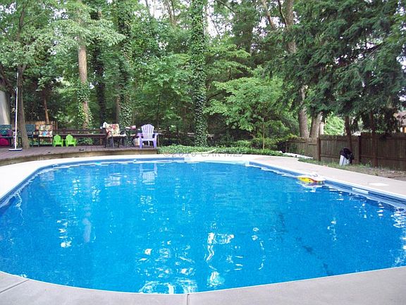 Contemporary with a Mediterranean flair on an elevated lot. Enjoy the privacy around the in-ground pool, and a large two level deck. Living room has a large brick woodburning fireplace. View of Schumaker Pond, walk to fishing or tennis. Convenient to schools, shopping, and major arteries for travel. One of a kind home.