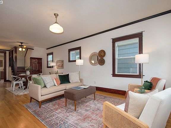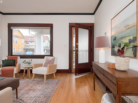 Charming Craftsman Bungalow w/Modern updates. Inviting Front porch complete w/porch swing opens to light-filled living & dining rm then into huge Kitch w/cook island, skylights & eating area. Kitch overlooks backyrd & has a Mt Tabor view. Backyd deck is perfect for morning coffee or summertime BBQs. 2 beds/1 bath on main. Upstairs is a large Primary en suite + sitting/office area. Unfin basemnt w/great potential. Home is just blks from Belmont/Hawthorne restaurants, cafes, theater & New Seasons! [Home Energy Score = 4. HES Report at https://rpt.greenbuildingregistry.com/hes/OR10209578]