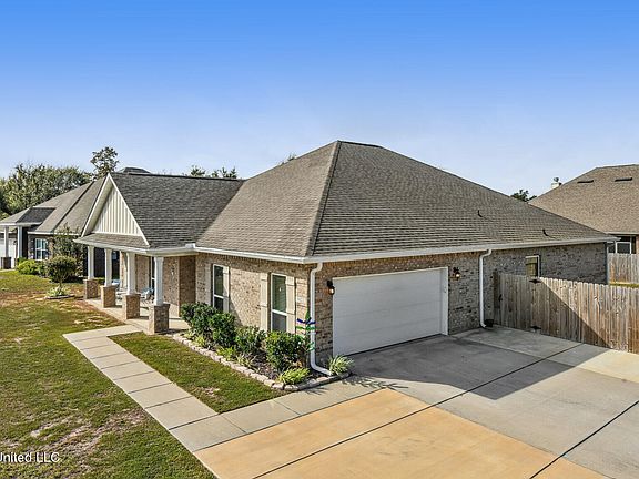 This home in popular South Pointe is a dream! And it is priced BELOW market comps so you definitely don't want this one to slip by without an opportunity to see it. Built in 2017 and is in immaculate condition. A popular D R Horton floorplan, it has all the things today's buyers want: Open floorplan, high/tray ceiling in the great room, loads of upgraded white cabinetry with crown trim, stainless appliances in the kitchen, fireplace in the den, weathered barn wood LV plank flooring in the main living areas. A spacious primary en-suite bedroom /bath with crown molding, separate shower and garden tub and huge walk in closet. The Split Bedroom plan is perfect for families of all ages. A solid brick home, with double car garage with side entry, additional parking areas, privacy fenced backyard, storage building, and a screened back porch for easy gulf coast living. Easy access to I-10 and the award winning Ocean Springs High School, Ocean Springs Hospital, shopping and dining, Webb's Landing for fishing or launching a boat, and St Andrews Playground. Put this 4 bedroom, 2.5 bath at the top of your list to see! No flood required and on a corner lot!
