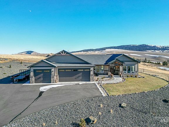 Gorgeous views, gorgeous home, GORGEOUS simply sums up this entire custom built home! Sweeping views from every room, views all the way to Pullman! Capture the majesty of this home from walking up to the expansive, covered front porch & open beam construction. Inside foyer showcases more open beam construction, stately vaulted ceilings, & open great room concept. Gourmet kitchen boasts a beautiful kitchen island, quartz counters, two tone cabinetry, farmhouse sink, subway tile, + butler style pantry. Expansive windows in living room capture the outside & bring it inside. Gas fireplace, wood beams, open concept, abundance of natural light, makes living room a great gathering room. Master suite has 9' ceilings, crown molding, & ensuite bath. Great home office w/views. Outside is just as beautiful with its lavish covered rear patio; exposed open beam design, tongue & groove ceiling, ceiling fan, + fully landscaped. Full irrigation system, split rail fence & generous plantings make for perfect entertaining home.