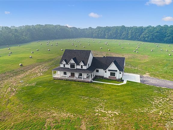 Amazing home on 12.69 acres! Step inside this massive house (4616 per PRC) and immediately be impressed. Extensive front porch and two story entry greets family and guests. Warm and inviting study (currently being used as a Bourbon Room) features a stunning beamed ceiling. This space could also be a formal dining room if needed. Butler's pantry with wine room connects study to the oversized great room with gas fireplace and opens to the kitchen. The chef kitchen includes high end Thermador appliance package, massive island (10x4.5) 42" cabinets, Quartz countertops and a 8x6 pantry with electrical outlets. Sliding doors off the great room creates a wall of natural light and leads to a huge covered porch...plenty of room for entertaining or enjoying sunsets! Cathedral ceilings accent the gorgeous primary bedroom with private access to the porch, his & hers walk-in closets (one closet connects to the 1st floor laundry room) deluxe ensuite bath with double vanities, free-standing bathtub & a huge walk-in shower. Also found on the first floor is a guest room with it's own private bath; 2 half baths are also available. Two nice sized bedrooms with their own private baths & walk-in closets can be found on the second floor. Check out the loft area and its fantastic view of the countryside...plenty of room for whatever suits your lifestyle. The 3000 sq ft, partially framed, walk-out lower level has endless possibilities...plumbed for another full bath, a sunken room is perfect for golf simulator or theater space, plenty of area for a guest bedroom, rec room, exercise room & storage. Other fine features of the home: high ceilings, oversized trim, tall doors, 2 HVAC units for multi-climate control, AT&T high speed internet, tankless water heater, Pur2O whole house purification, outdoor gas hook up for a grill, Pella Windows & oversized three car garage. Country living but close to all conveniences!