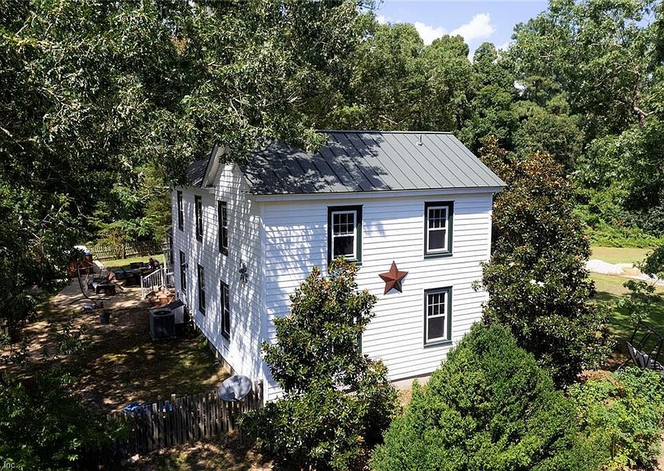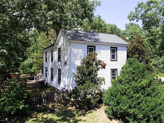 Unique charming 3 Bedroom, 2.5 Bathroom farmhouse w/metal roof on 3 acres, zoned agricultural. 2 driveways with Mule System at gate and Ring cameras around property. 17x12 Scr Porch, 28x26 det garage w/ huge 2nd story+30x19 Lean-To. Newer windows,HVAC. Lots of old wood floors, doors,moldings,accent walls&built ins. Soapstone wood stove. Granite & stainless in bright eat in kitchen with lots of windows .Picket fenced yard for pets(fence within fully fenced compound). Garden, Greenhouse, Goat Barn, Chicken Coop. Propane gas for cooking,tankless water heater & dryer. Fabulous new swim spa for relaxing and exercise.