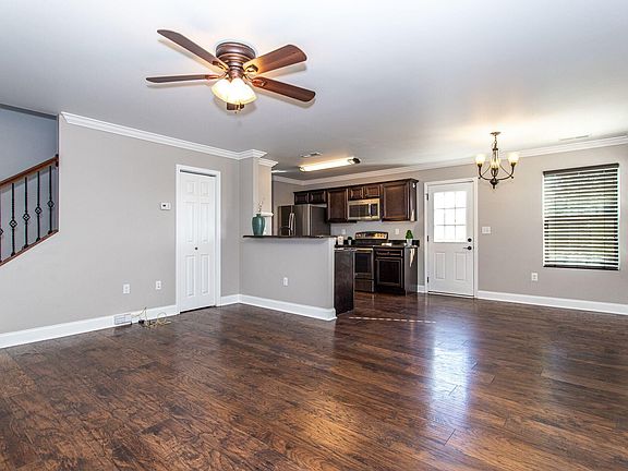 This dollhouse is Move in Ready with nice finishes. Laminated Wood floors on main.. Kitchen has granite counters, cherry stained cabinets stainless steel appliances. Half bath on main plus two car garage. Large master with double vanity/granite top. Walk in closet. Oil Bronze hardware and pretty light fixtures through out home. Second bath has tiled floors/granite vanity top. Large laundry room with tiled floor. Carpet just professional cleaned. Backyard is fenced with circular stone fire pit.