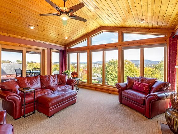 Extensive and meticulous updates to this beautifully unique log home! Imagine yourself relaxing on the deck & soaking in the hot tub while enjoying the view for literally miles! The very well thought out three-story addition takes this already special home to next level heights- from the cathedral ceiling family room with a wall of eastern-facing Eagle casement windows to the interior stone wall and solid six-panel doors, to the deck with tempered glass railings (save the view!) to the heated ceramic kitchen and master bath floors, to the efficiency and safety features (Ecobee thermostat and Simplisafe 24 hour home security), no detail was spared. Many options for at-home office space, homeschooling, or hobby/music/workout/flex rooms. Lower level- perfect apartment or Airbnb!