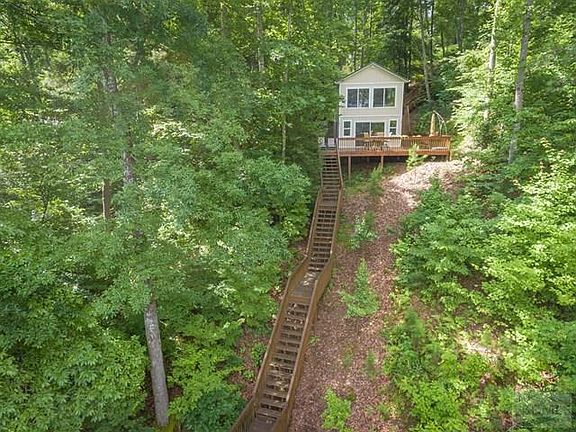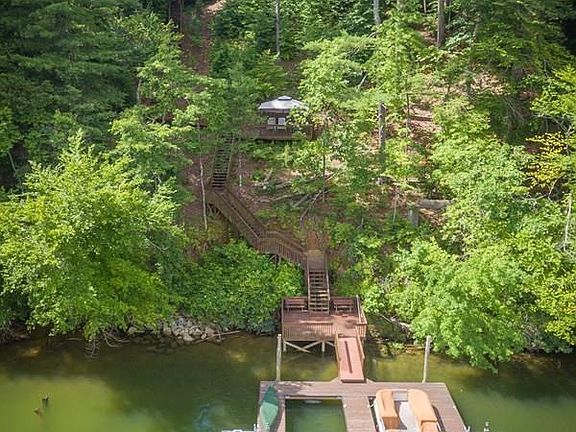 WOW!!!! You have to see this beautiful waterfront home on Lake Rhodhiss. This 5 bedroom and 4 bath home has over 4800 square ft. of heated living space. The craftsmanship of the home is second to none. The oversized master bedroom has large windows that overlook the lake. Your master bathroom has a large tile shower and separate whirlpool tub. The eat-in kitchen has custom built cabinets, granite counter tops w/ dual sinks, built-in wine rack and top of the line appliances. Family room has vaulted ceiling with vented gas log fireplace. Other rooms on the main floor are a formal dinning room, parlor/family room, extra bedroom/bath and laundry room. The lower floor has coffer ceiling with wide crown molding surrounding the living area. Custom built wet bar w/ sink and refrigerator for entertaining guest. Extra bedrooms, bath, storage, offices space are located on the lower floor. Outside amenities include huge decks, basketball courtyard, garden area with fire pit and double boat dock slips. But most importantly, a lake front cottage. The cottage (512 Sq. Ft.) is situated near the waters edge overlooking your big waterfront views. View video for the virtual tour.