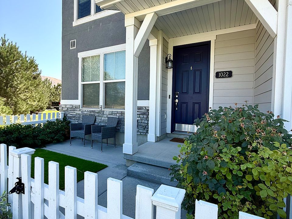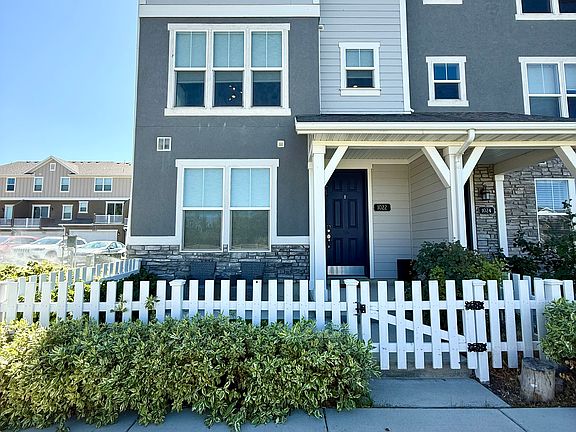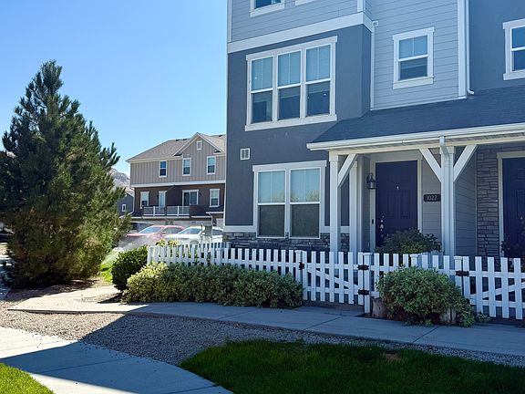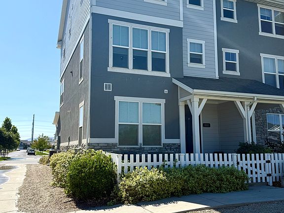 Located at Westgate in Bluffdale this 4 bedroom 4 bath end unit townhome is exactly what you're looking for. The unobstructed views this unit offers gives it the feel of a single family home. There are so many upgrades in this home - quartz countertops, iron railings, backlit mirrors, wall tile in bathrooms, updated faucets, permanent shelving, pegboard storage and more. The bottom floor bedroom is converted to a workout room - with its own bathroom. The rest of the bedrooms are on the top floor - a great sized principal bedroom with an updated bathroom & large closet - and 2 other rooms which share a full bath. The washer and dryer are included - as well as the TV in the master bedroom. Enjoy the Nest smart thermostat, the keyless front door entry and the video doorbell as additional features. This property has a comfortable sitting area just outside the front door - and across the sidewalk you can enjoy a large green area.