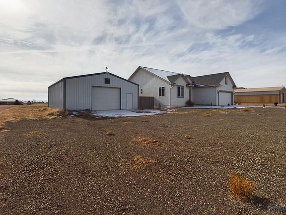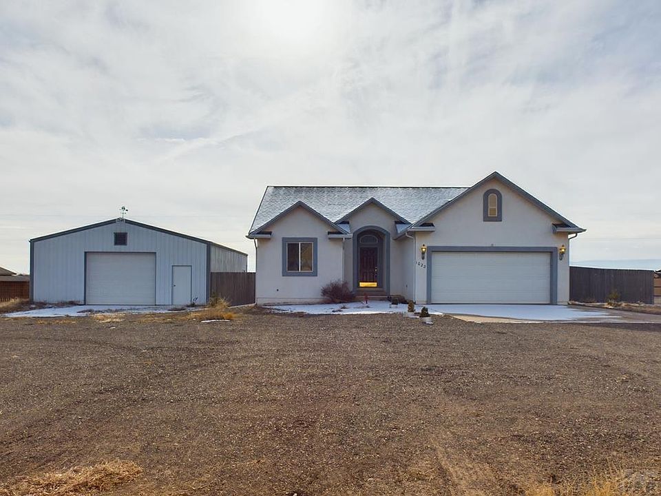 Beautiful Pueblo West Acreage Rancher! This incredible home hosts 2 beds, 2 baths, a 2 car attached garage on 2,642 total sqft all on 1 acre. Entering the home, you are greeted by the large living room with its beautiful gas log fireplace. Primary bedroom features a walk in closet, full bath with a dual sink vanity and a walk in shower. 2nd bedroom has its own closet and the full bathroom right outside the bedroom door. On the other side of the home you will enter the dining room that has a large window and double doors leading to the back patio. Kitchen has a bar top that allows for additional seating. Tile countertops and lvt flooring allow for easy cleaning. Kitchen comes complete with a dishwasher, refrigerator and microwave. Through the kitchen is the laundry room that leads to the two car attached garage. Laundry room comes with the washer and dryer and also has a large attached pantry. The unfinished basement gives plenty of room to grow and to add your own touch. Backyard has a large covered patio looking out upon gorgeous mountain views, an additional storage shed and is fully fenced. The 4 car detached shop has plenty of space for all your toys. Home is located only 8 minutes from the Pueblo Reservoir North Shore Marina and 19 minutes to Pueblo Motorsports Park. This home has so much to offer. You do not want to miss out on the opportunity to make it yours. Property is being sold as-is.
