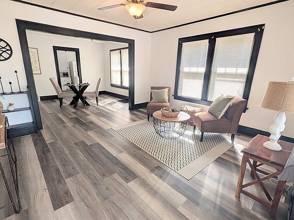 Charming older home nestled in a quiet neighborhood. This inviting residence boasts three cozy bedrooms and a single, tastefully updated bathroom, blending modern convenience with vintage charm. As you approach, a neatly fenced backyard offers privacy and a safe haven for outdoor activities, ideal for both relaxation and play. Stepping inside, the spacious living room welcomes you with its warm ambiance, adorned with newer floors that gleam under the natural light pouring in through large, vintage-style windows. Adjacent, the dining room invites gatherings and meals with loved ones, featuring ample space for a family-sized table and cherished heirloom furniture. The character of this home lies in its kitchen, where modern backsplash harmonize with original cabinetry, preserving the home's character while accommodating contemporary needs. A delightful covered porch extends the living space outdoors, providing a tranquil spot for morning coffee or evening conversations while overlooking the front yard. Conveniently located near an elementary school, this home offers proximity to educational opportunities and a vibrant community atmosphere. The updated garage not only provides secure parking but also ample storage space, ensuring practicality alongside its aesthetic appeal. Schedule your showing today!